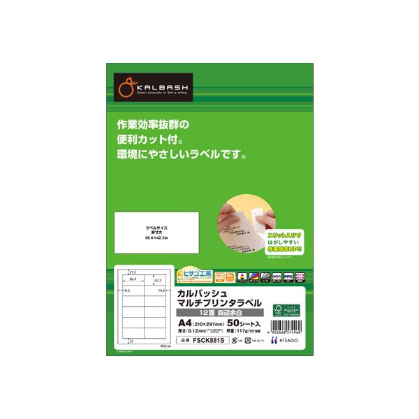 お取り寄せ ヒサゴ カルバッシュ ラベルシール 12面 四辺余白50枚 Fsck1s K018 Bungu便 通販 Yahoo ショッピング